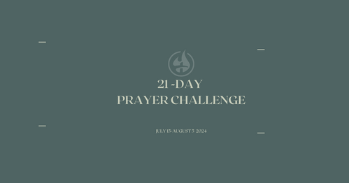 We invite you to join us for 21 days of intentional prayer. Check here every day for prayer prompts for this challenge. We are excited to see what God does through prayer.