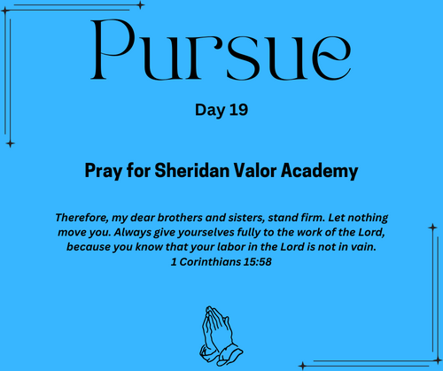 Prayer Prompt: Pray for Sheridan Valor Academy